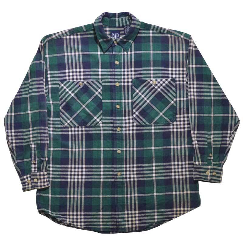 Used☆ Ladys OLD GAP 紺緑系チェック Cotton シャツ